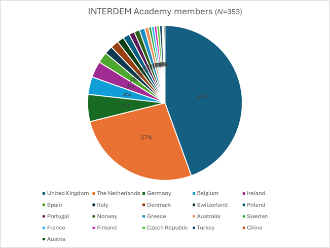 Fig 1. Country distribution of INTERDEM Academy members.