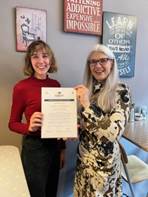 • Jacoba is a PhD student at the Utrecht University of applied sciences, the Netherlands. The jury was unanimously in selecting this paper as winner. At the annual INTERDEM meeting connected to the 34th Alzheimer Europe Conference in Geneva, Jacoba Huizenga presented her article together with a member of the EWGPWD and Brain power group: Gerda van Tongerloo. Besides the publicity  and opportunity of presenting her work, Jacoba also won a price of 1000 euros as a boost for her career. Both runner ups won 500 euro to be used to boost their career.